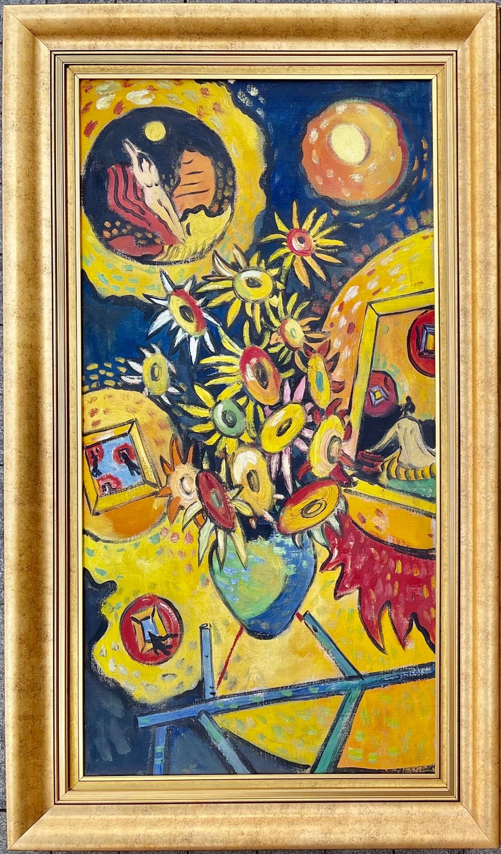 Кищенко А.М "Подсолнухи". Холст, масло. Размер 100,5х51см.