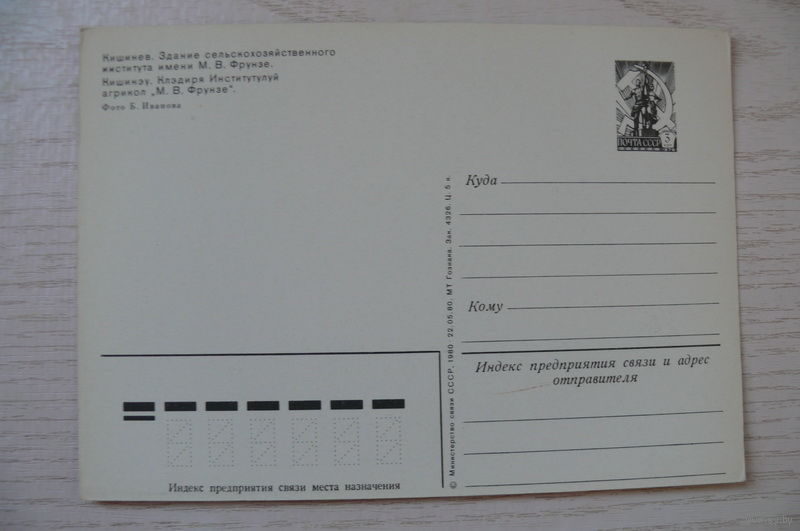 Кишинев. Сельскохозяйственный институт имени Фрунзе; 1980, чистая.