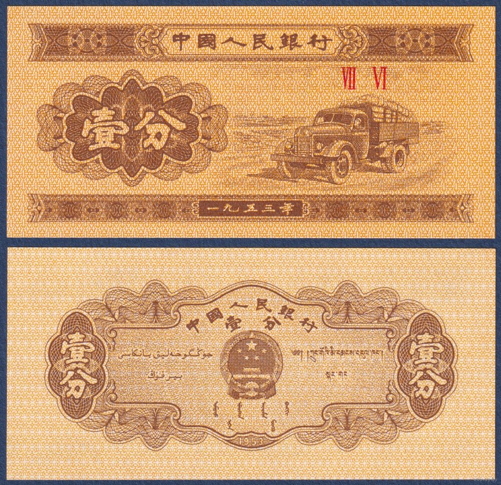 Китай, 1 фэнь 1953 г., P-860c (VII, грузовик), UNC