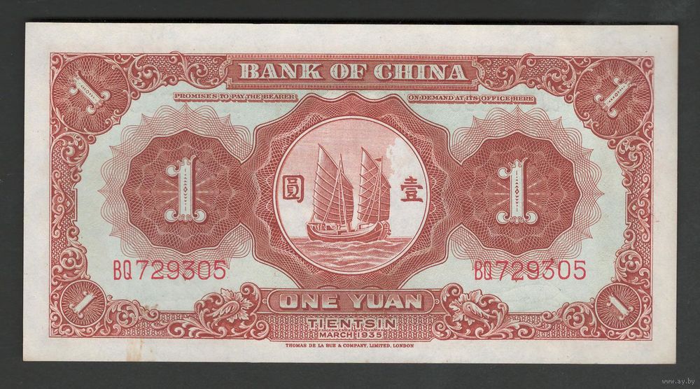 Китай 1 юань 1935 года. Bank of China. Тип P-76. Состояние UNC