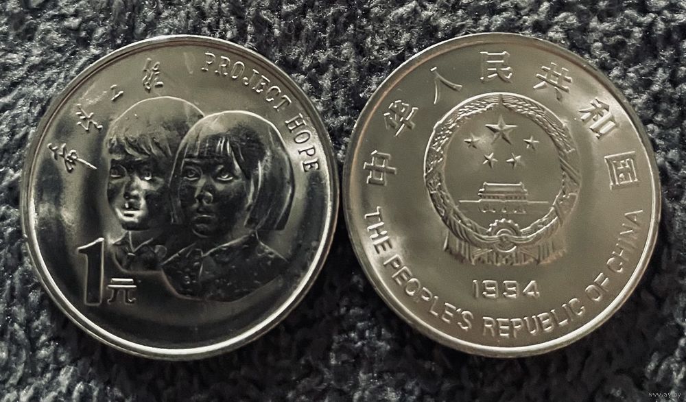 Китай 1 юань 1994 5 лет проекту Надежда UNC