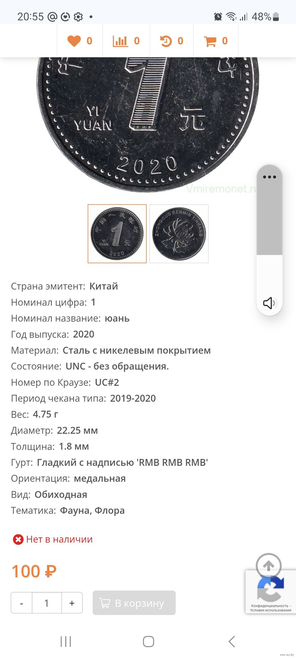 Китай 1 юань 2020 г ( новый тип , 2 года тираж, встречается реже )