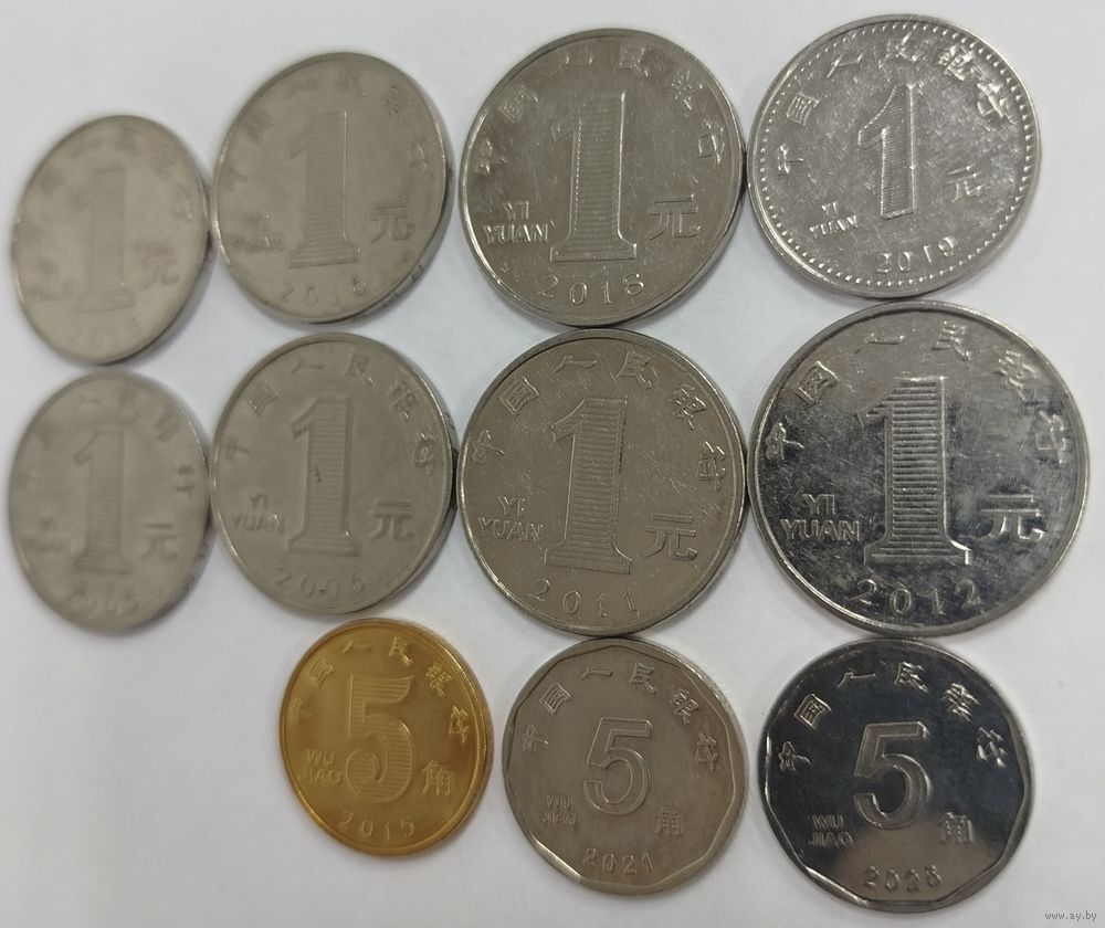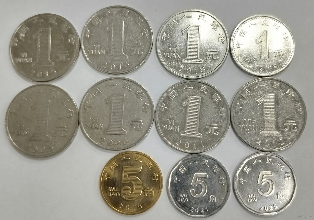1 юань 2005, 2006, 2011, 2012, 2015, 2016, 2018, 2019 годов, 5 джао 2015, 2021, 2025 годов, хорошее состояние, возможен обмен на любые банкноты мира