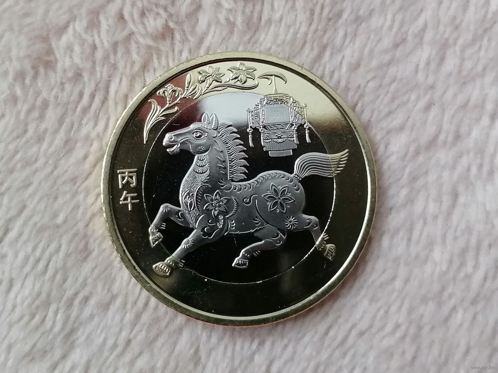 Китай 10 год лошади, чек. блеск с рубля
