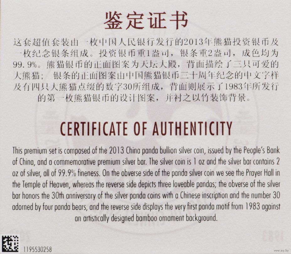 Проба: 999 Fine silver