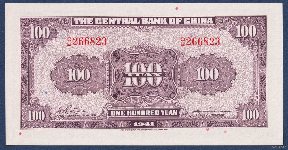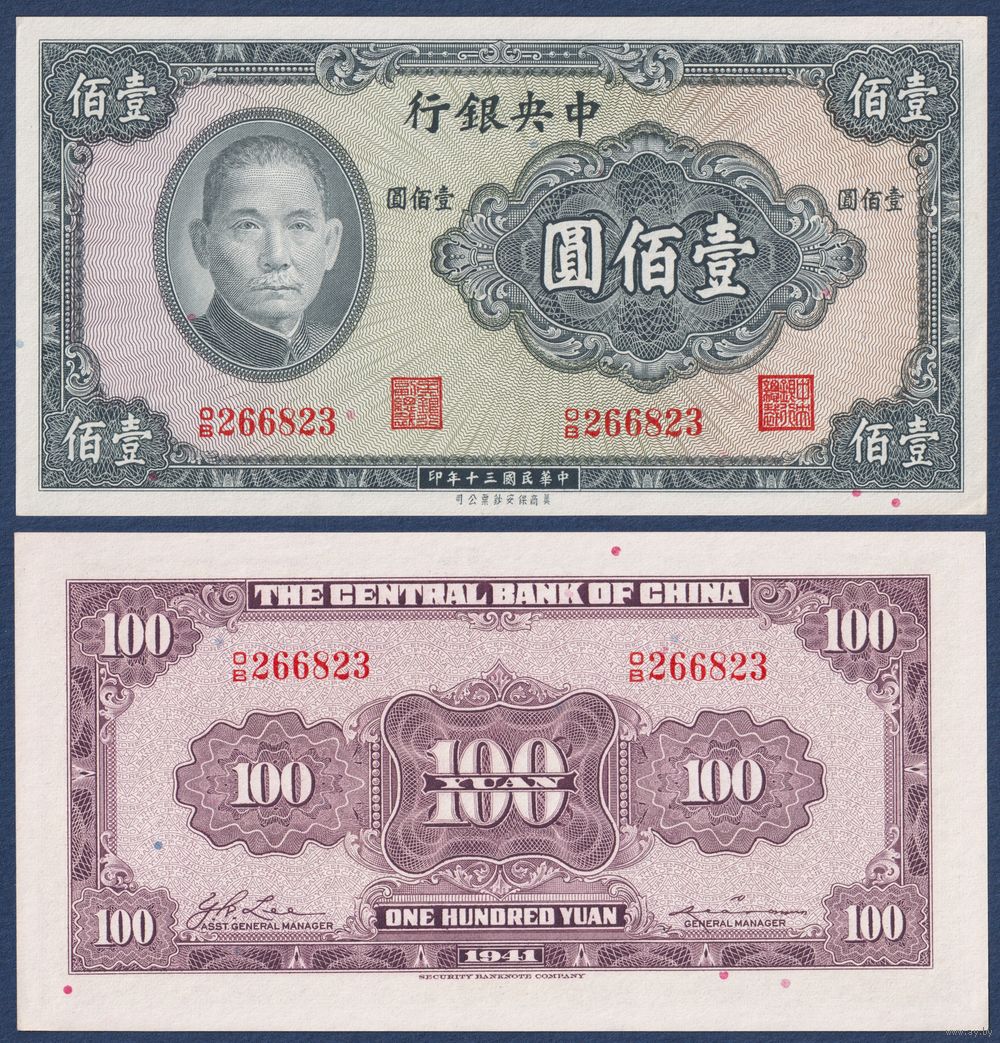 Китай, 100 юаней 1941 г, P-243a (OB, Сунь Ятсен), UNC-