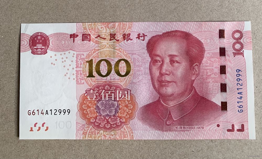 Китай 100 юаней 2015 номер G614A12999