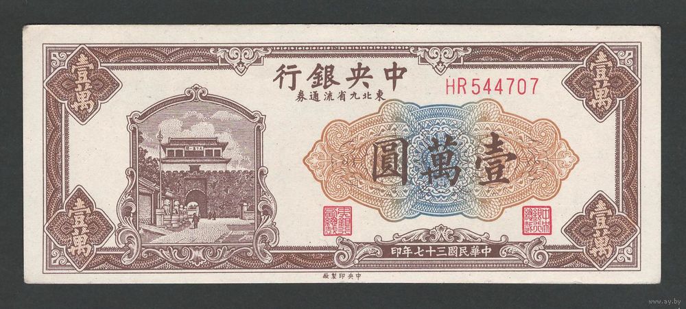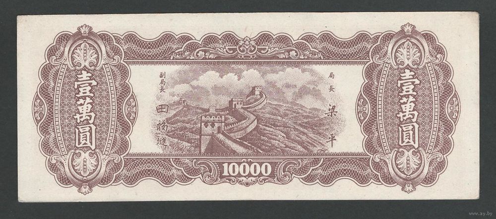 Китай 10000 юаней 1947 года. Состояние аUNC