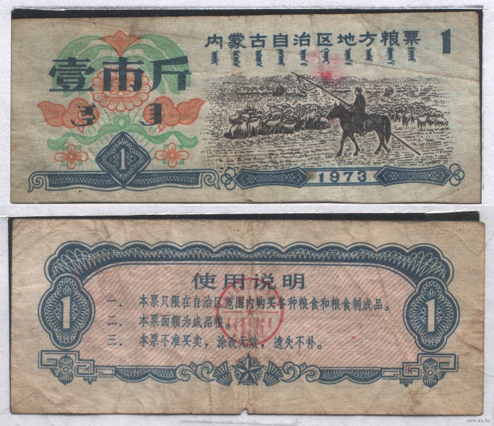 Китай 1973 год Внутренняя Монголия серия из 3 прод.талонов (al =