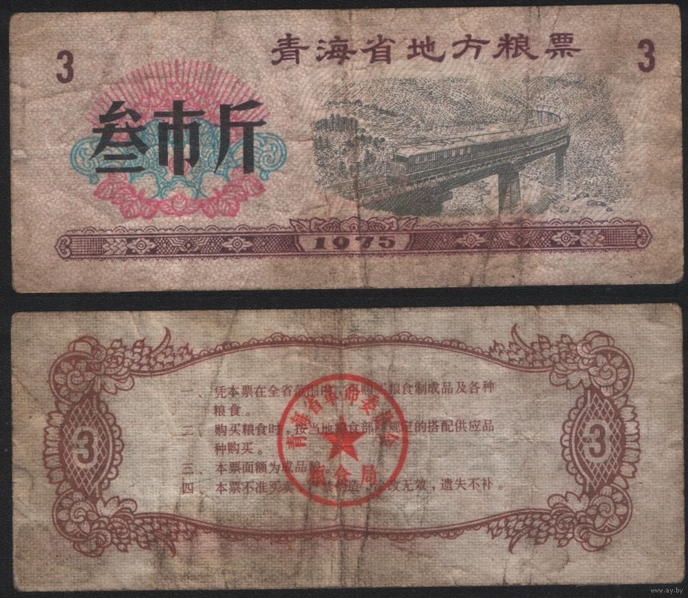 Китай 1975 год Цинхай пров. прод.талон (продовольствие) на 3ед=(3чжин)=1,5кг(рис) (rd02 =