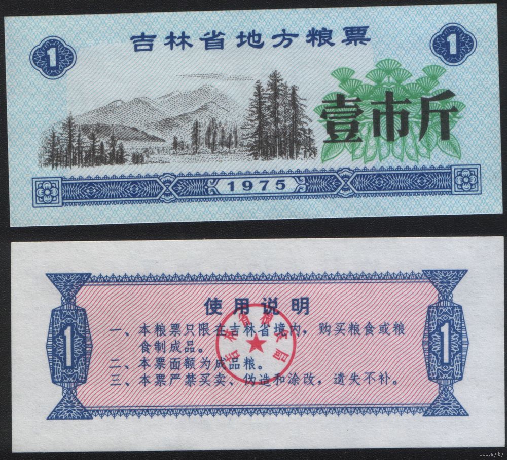 Китай 1975 год Гирин пров. прод.талон (продовольствие) на 1ед=(1чжин)=500г(рис) (rd02 =