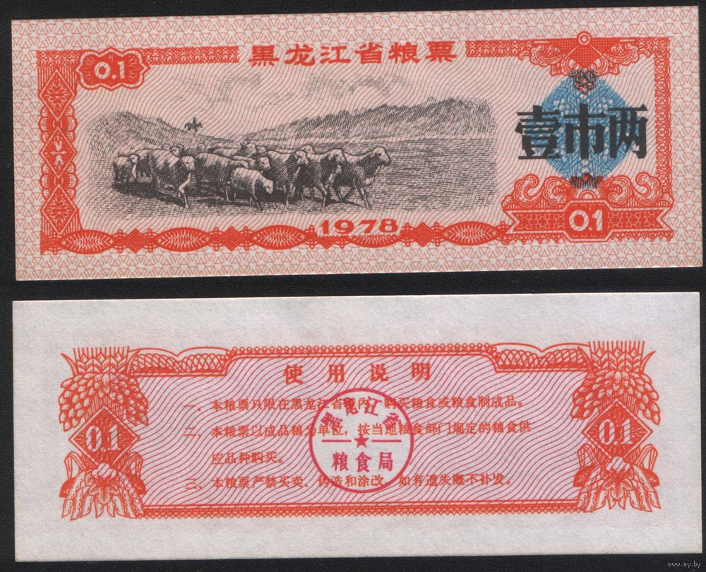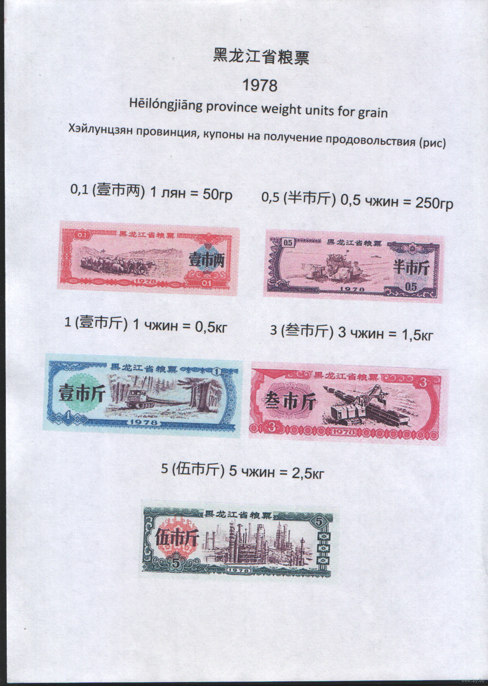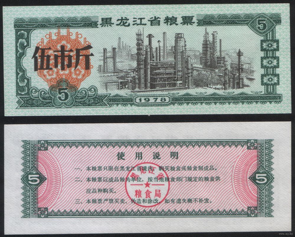 Китай 1976 год Хэйлунцзян пров. прод.талон (продовольствие) серия из 5 купонов (rd02 =