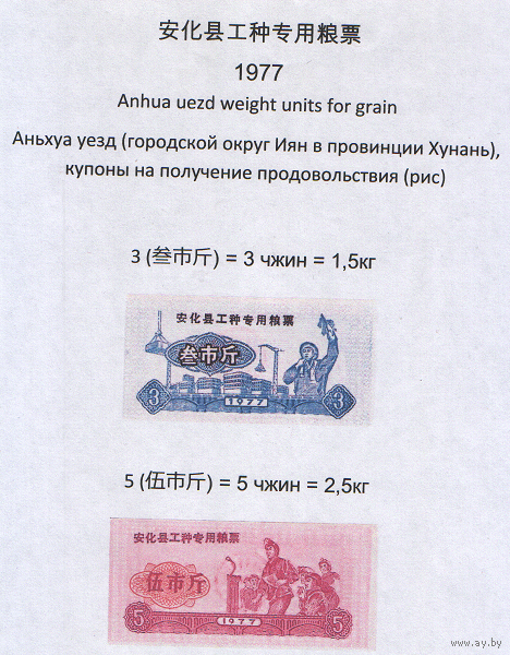 Китай 1977 год Аньхуа гор.округ Иян в пров.Хунань прод.талон (продовольствие) серия из 2 купонов (rd02 =