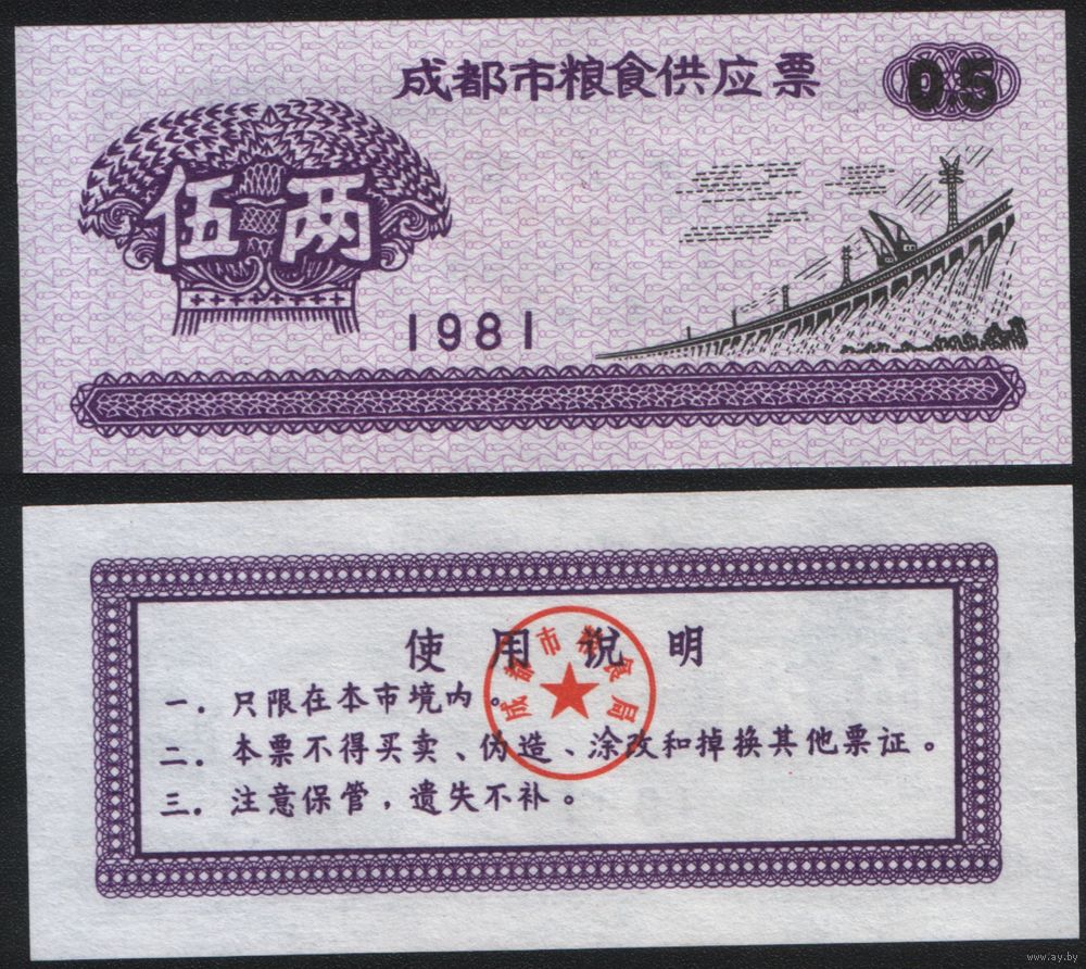 Китай 1980 год Чэнду пров. прод.талон (продовольствие) на 0,5ед=5лян=250гр (рис) (rd04 =
