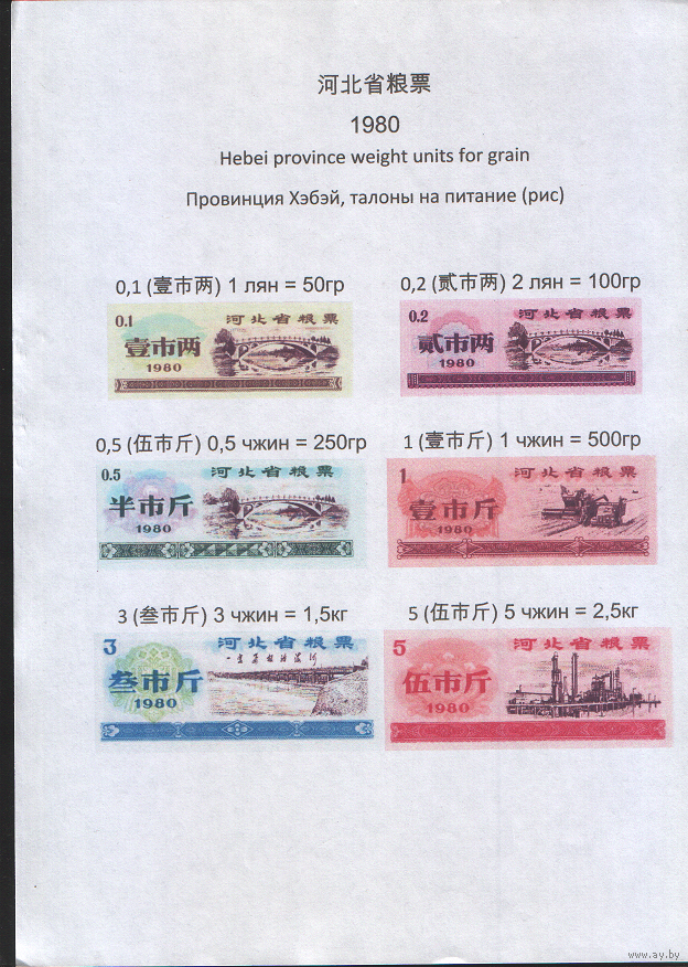 Китай 1980 год Хэбэй пров. прод.талон (продовольствие) серия 6шт (rd03 =