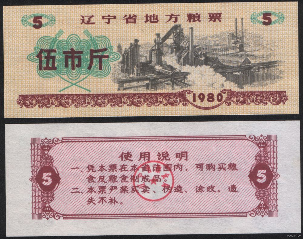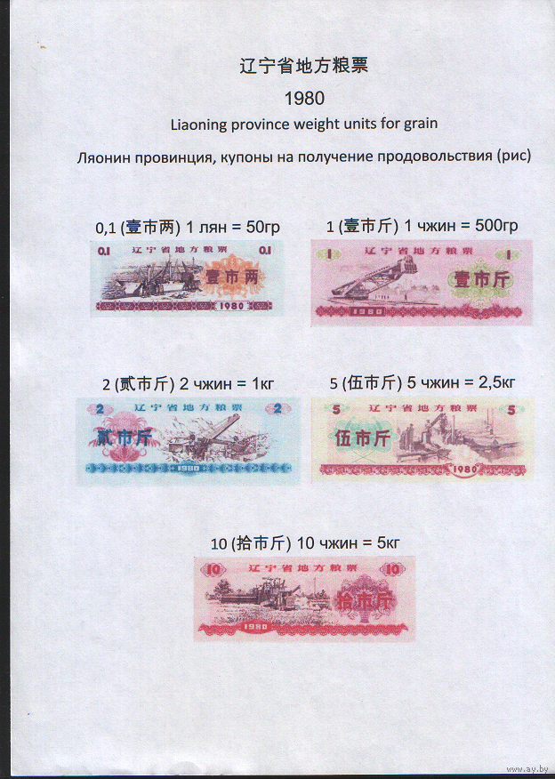 Китай 1980 год Ляонин пров. прод.талон (продовольствие) серия 5шт (rd03 =
