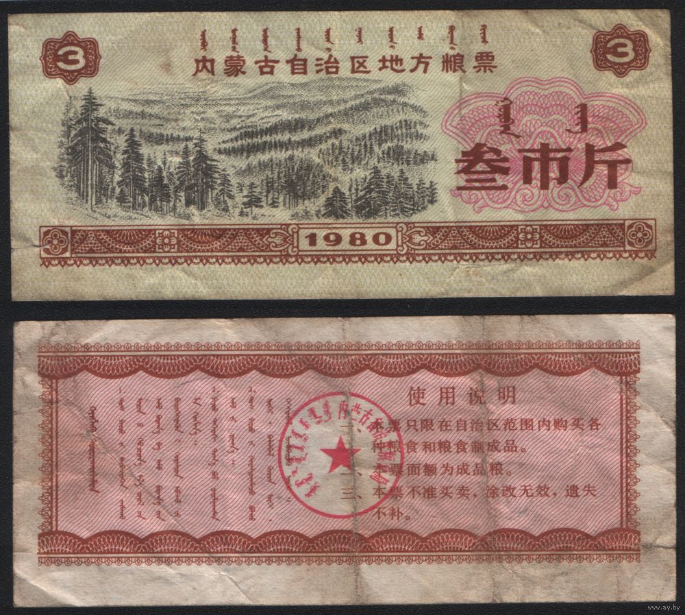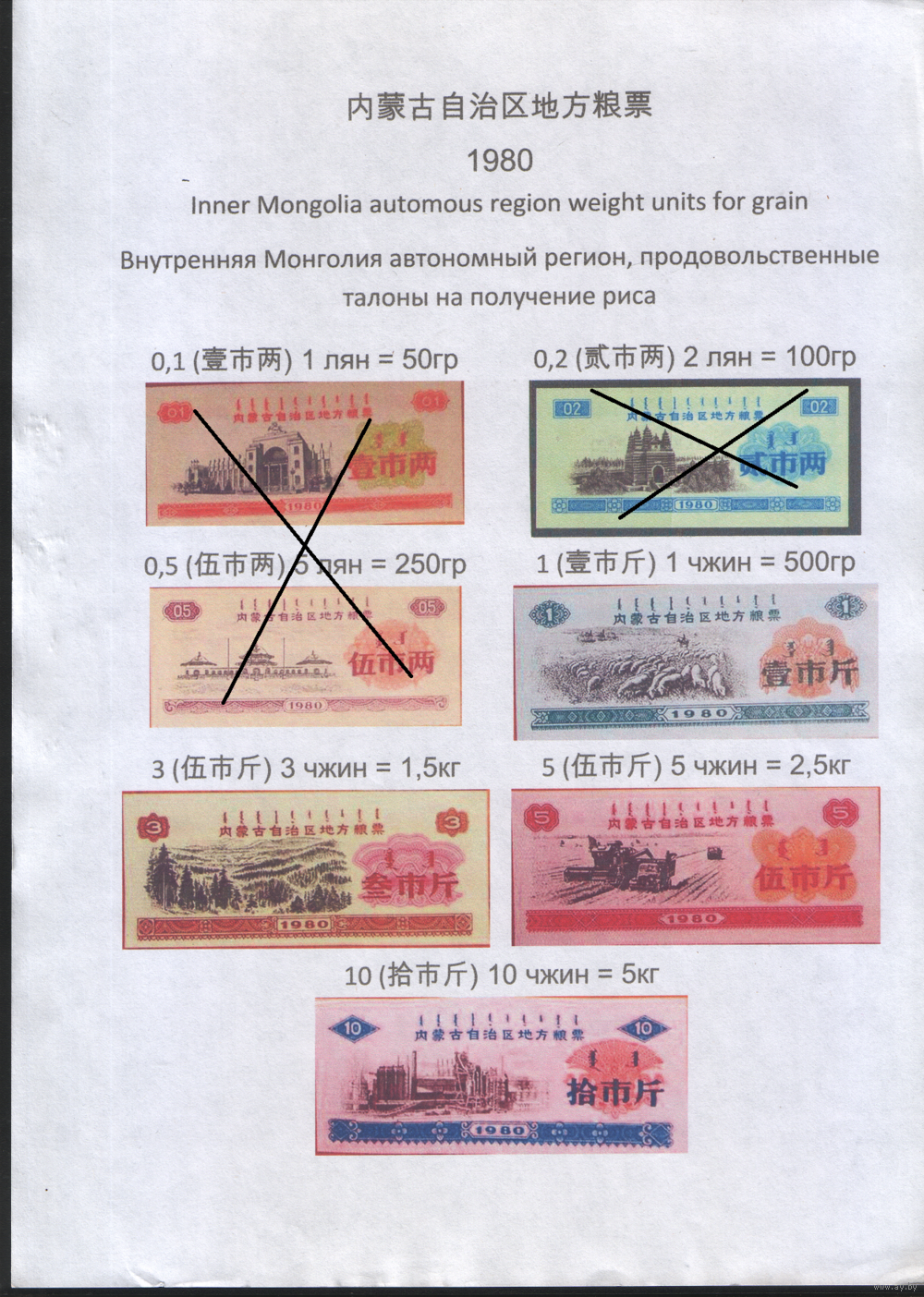 Китай 1980 год Внутренняя Монголия авт.р-он прод.талон (продовольствие) часть серии 4шт (rd03 =
