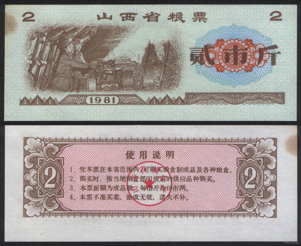 Китай 1981 год Шаньси пров. прод.талон (продовольствие) на 2ед=2чжин=1кг (рис) (rd04 =