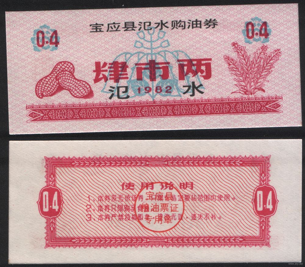 Китай 1982 год Сишуй город уезд Баонин Цяньдзин прод.талон (продовольствие) на 0,4ед (рис) (rd04 =