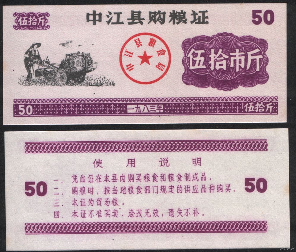 Китай 1983 год Чжунцзян прод.талон (продовольствие) на 50ед=50чжин=25кг (рис) (rd04 =