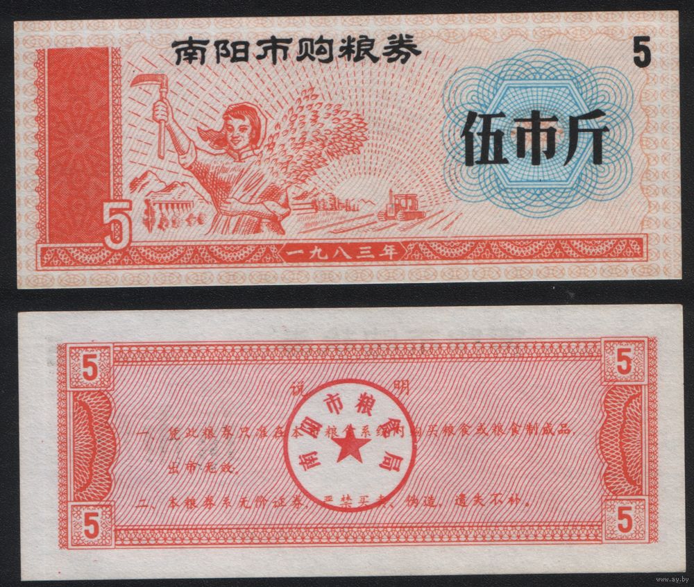 Китай 1983 год Наньянг прод.талон (продовольствие) на 5ед=5чжин=2,5кг (рис) (rd04 =