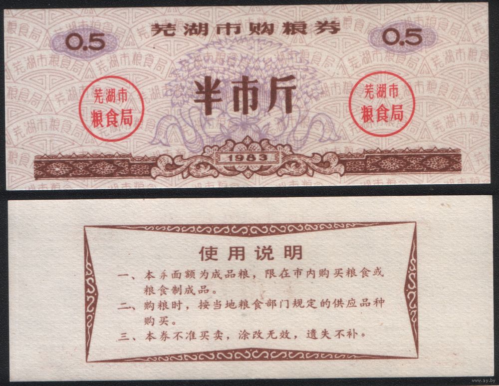 Китай 1983 год Уху прод.талон (продовольствие) на 0,5ед=0,5чжин=250г (рис) (rd04 =