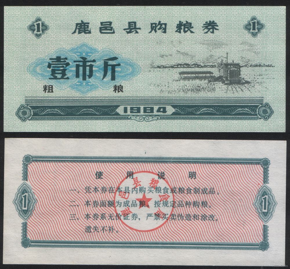 Китай 1984 год Луйи округ прод.талон (крупн.зерно) на 1ед=1чжин=500г (рис) (rd05 =