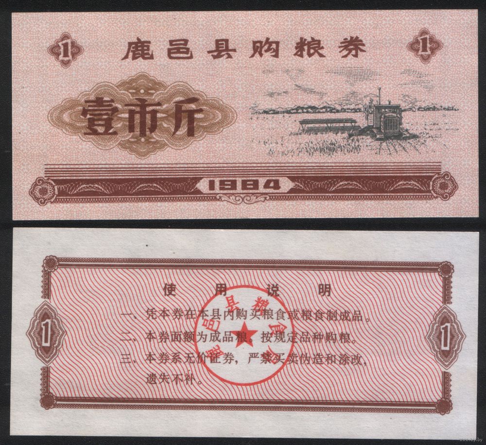 Китай 1984 год Луйи округ прод.талон (мелк.зерно) на 1ед=1чжин=500г (рис) (rd05 =