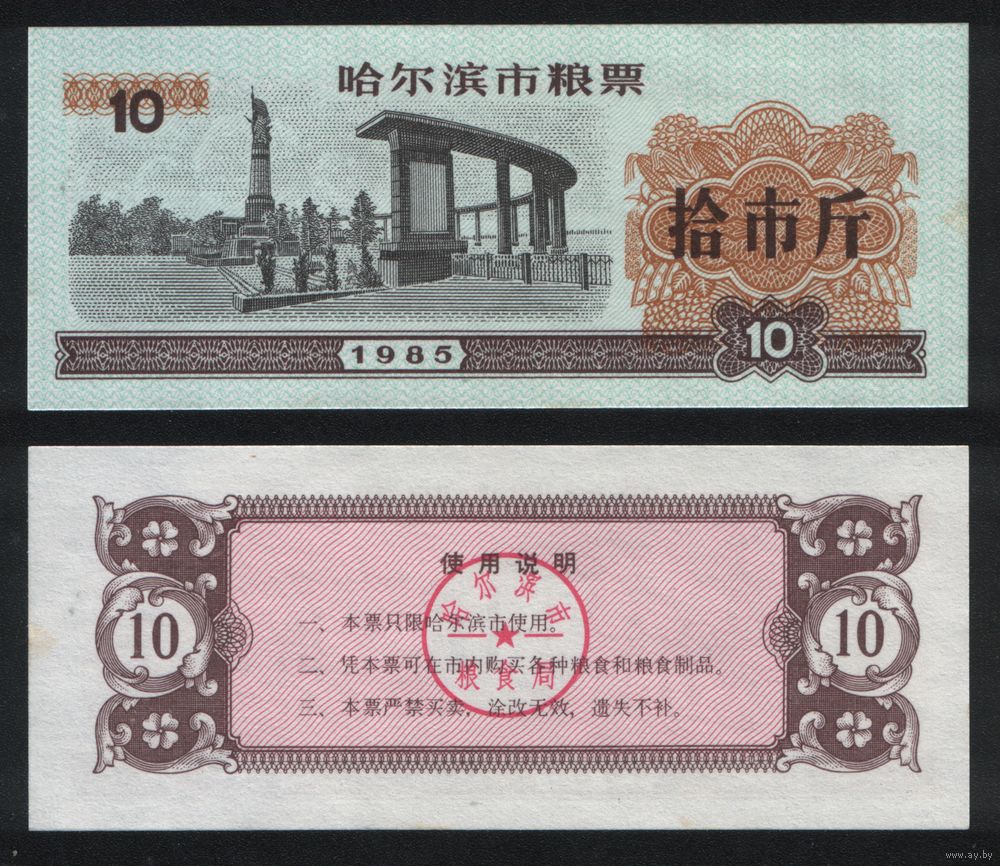 Китай 1985 год г.Харбин(Haerbin) прод.талон на 10ед=10чжин(цзинь)=5кг торг