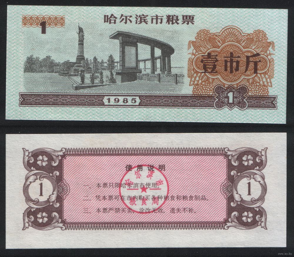 Китай 1985 год г.Харбин(Haerbin) прод.талон на 1ед=1чжин(цзинь)=500гр торг