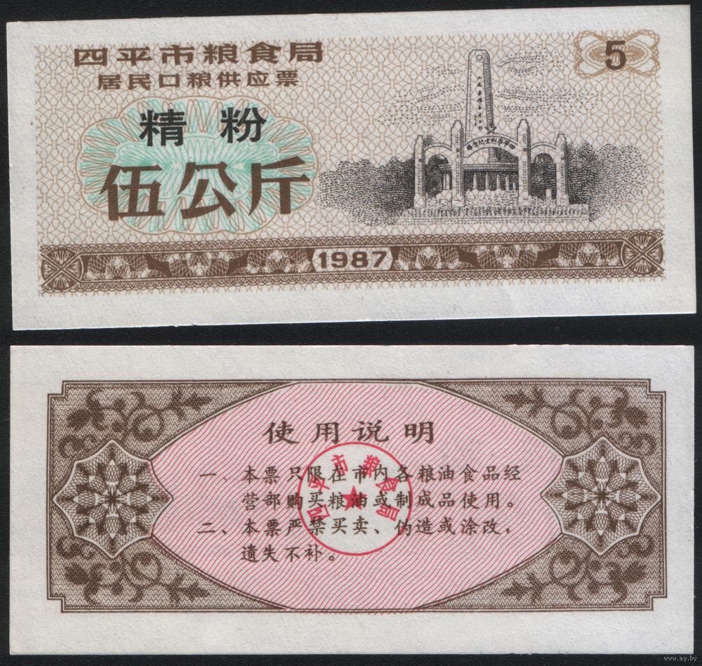 Китай 1987 год г.Сыпин(Siping)пров.Гирин прод.талон (мелк.порошок) на 5ед=5кг (rd08 =