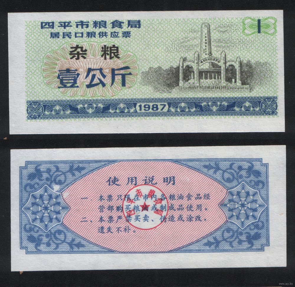 Китай 1987 год г.Сыпин(Siping)пров.Гирин прод.талон (разн.зерно) на 1ед=1кг ТОРГ
