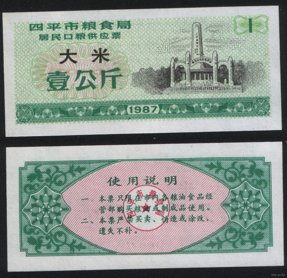 Китай 1987 год г.Сыпин(Siping)пров.Гирин прод.талон (рис) на 1ед=1кг (rd09 =