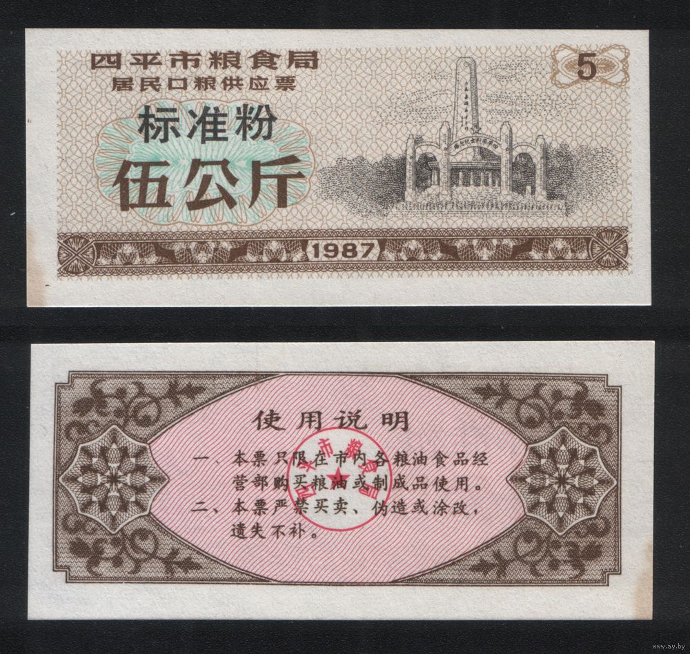 Китай 1987 год г.Сыпин(Siping)пров.Гирин прод.талон (станд.порошок) на 5ед=5кг ТОРГ