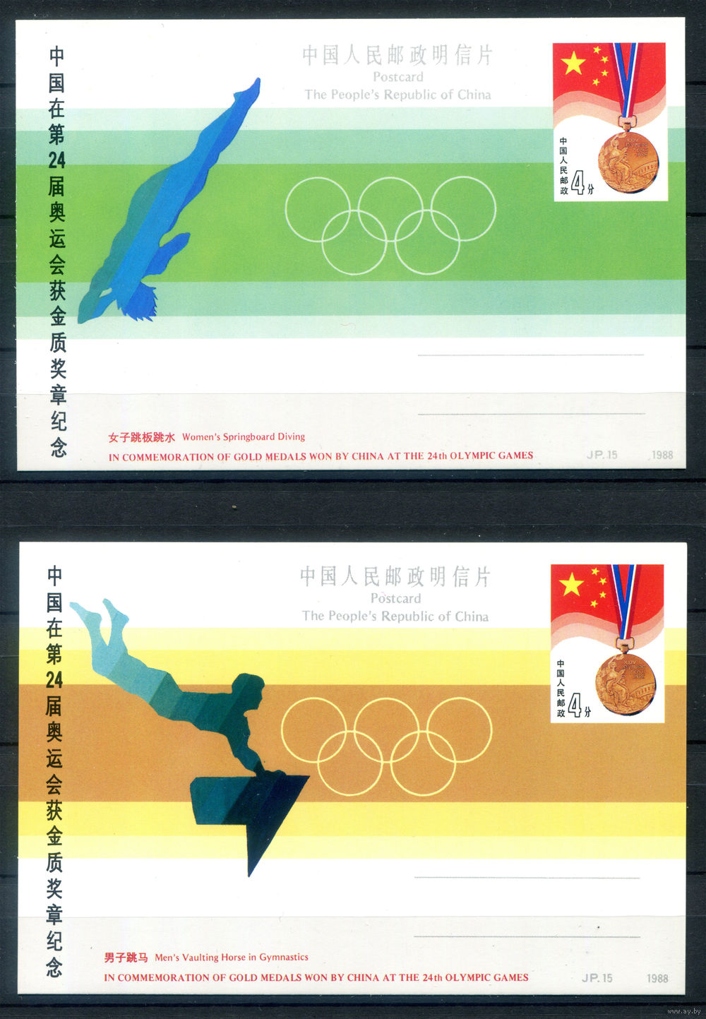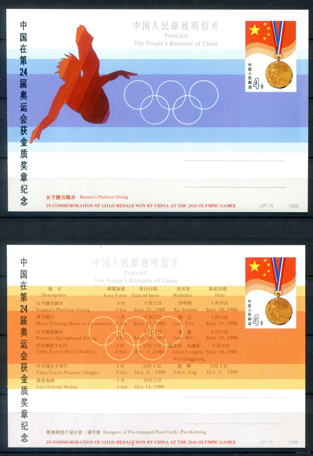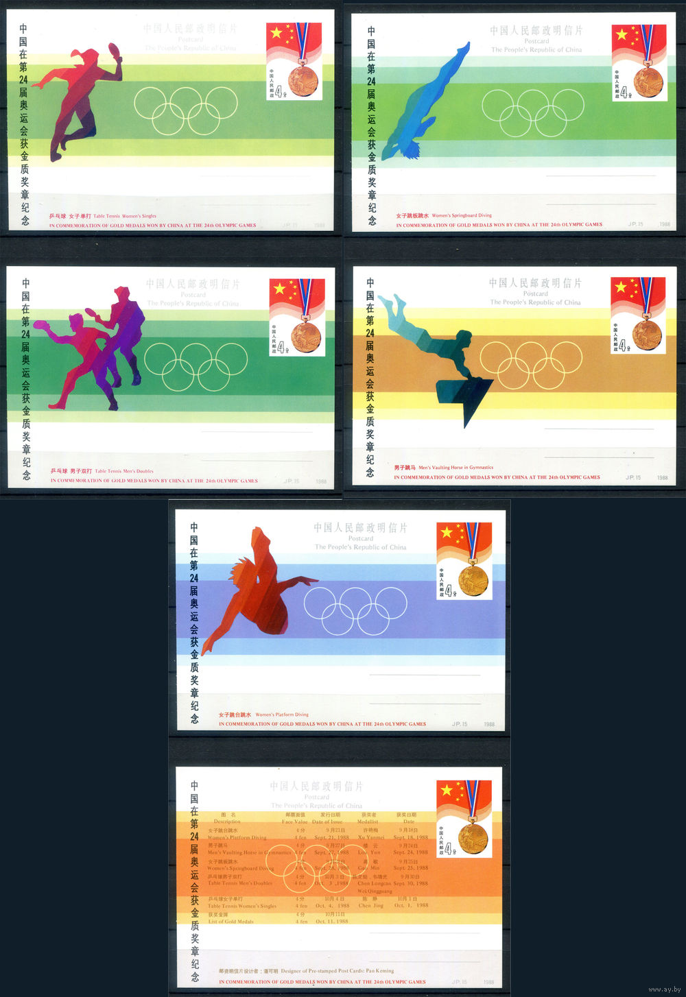 Китай - 1988г. - чествование победителей Олимпийских игр из Китая - 6 почтовых карточек - . #3-WB-98-CP-18