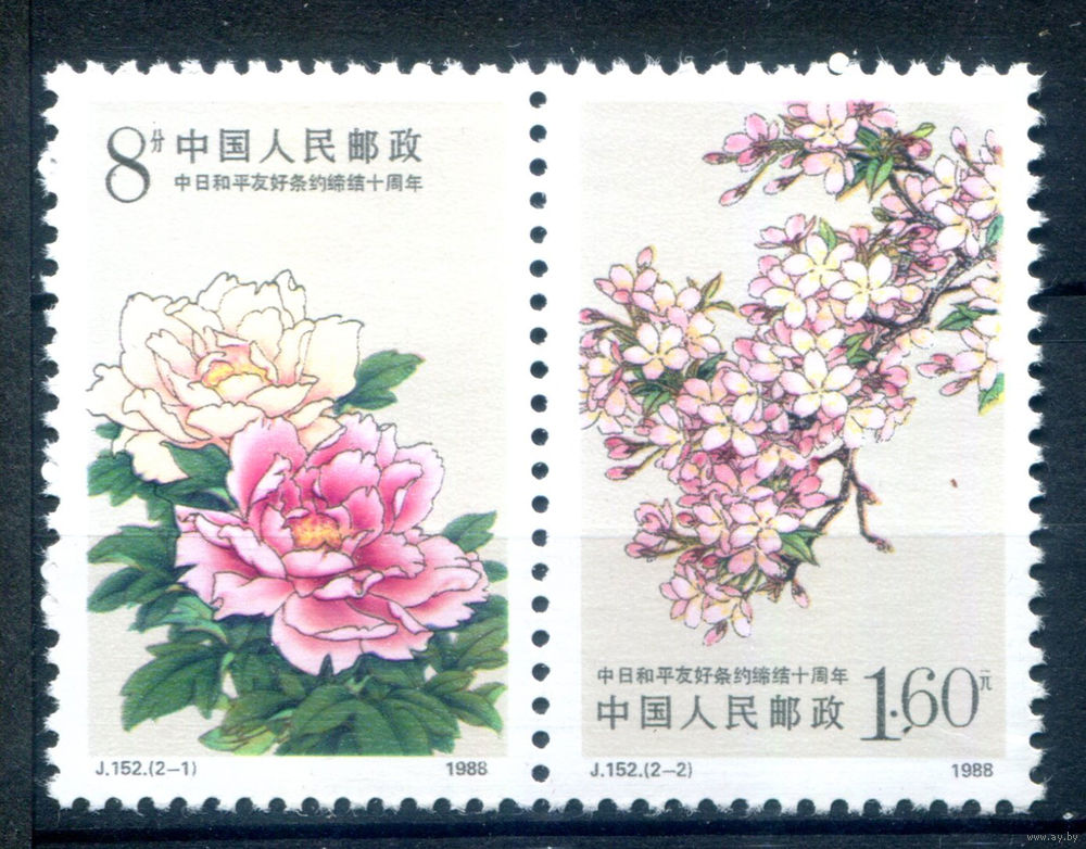 Китай - 1988г. - цветы, 10 лет китайско-японского договора о дружбе - 2 марки - сцепка - полная серия, MNH [Mi 2188-2189]. #3-WB-90-A-2