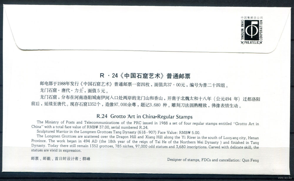 Китай - 1988г. - искусство, скульптуры, FDC/КПД - 1 конверт с гашением первого дня - [Mi 2187]. #3-WB-92-CP-14