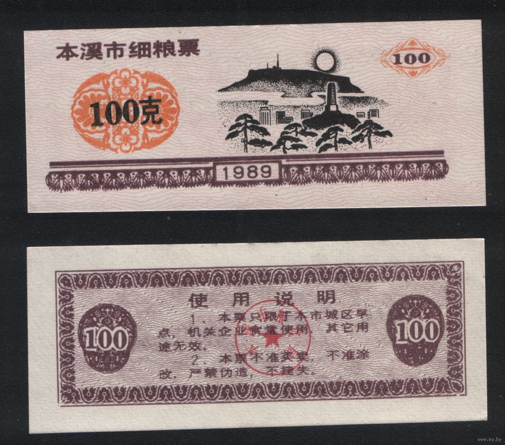 Китай 1989 год гор.округ.Бэньси,пров.Ляонин талон на мелк.зерно на 100ед=100гр ТОРГ