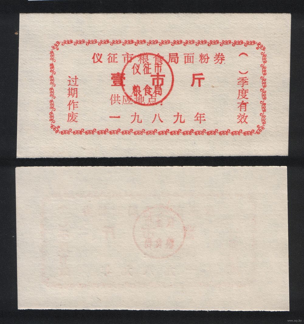 Китай 1989 год гор.уезд.Ичжэн, гор.окр. Янчжоу, пров.Цзянсу зерн.талон на муку 1чжин(цзинь)=500гр (печать без точек) ТОРГ