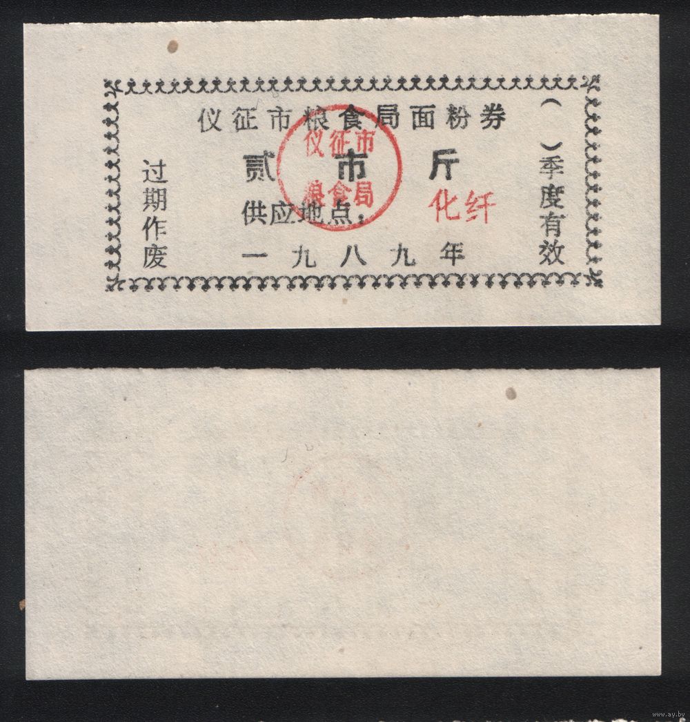 Китай 1989 год гор.уезд. Ичжэн, гор.окр. Янчжоу, пров.Цзянсу зерн.талон на муку 2чжин(цзинь)=1кг (печать с точками) (печать без точек) ТОРГ