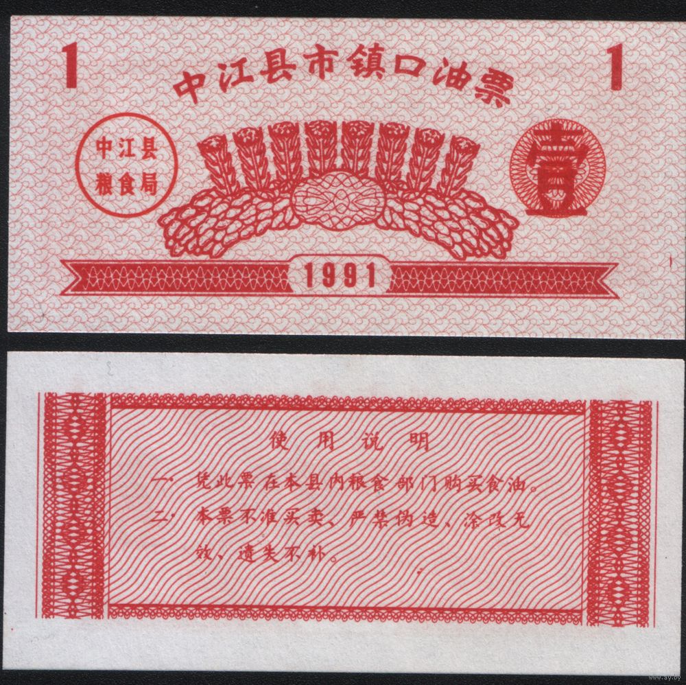 Китай 1991 год Джунцзян прод.талон нефтяные билеты для закупки раст.маста, зерна (многоразовый) на 1ед (rd01