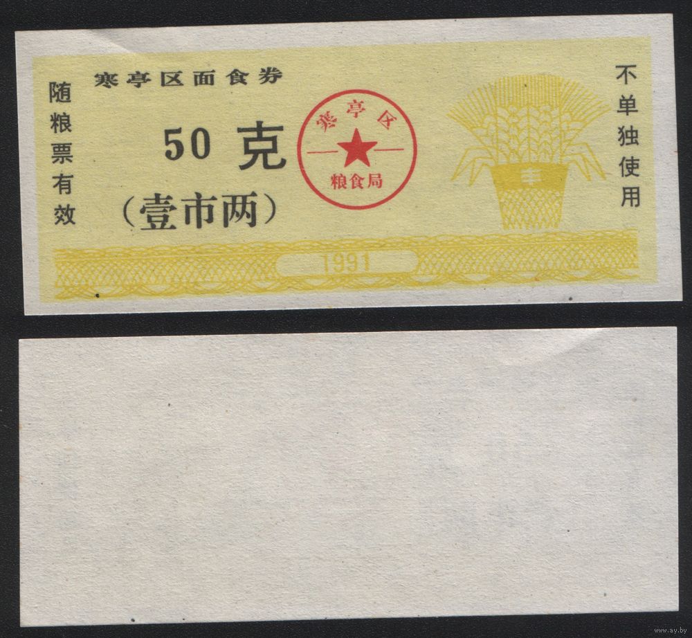 Китай 1991 год Ханьтинский район прод.талон (лапша) на 50ед=1лян=50г (рис) (rd06 =