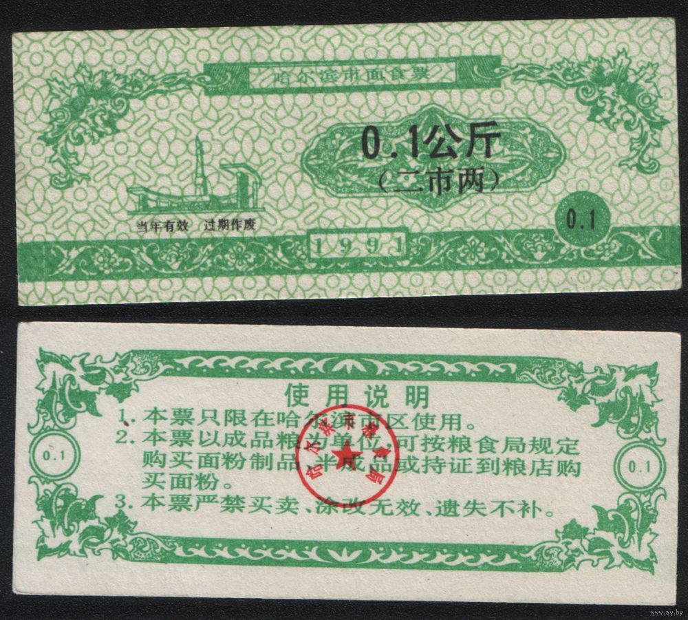 Китай 1991 год Харбин прод.талон (мелк.порошок) на 0,1 ед (2 лян) 0,1кг риса (rd01