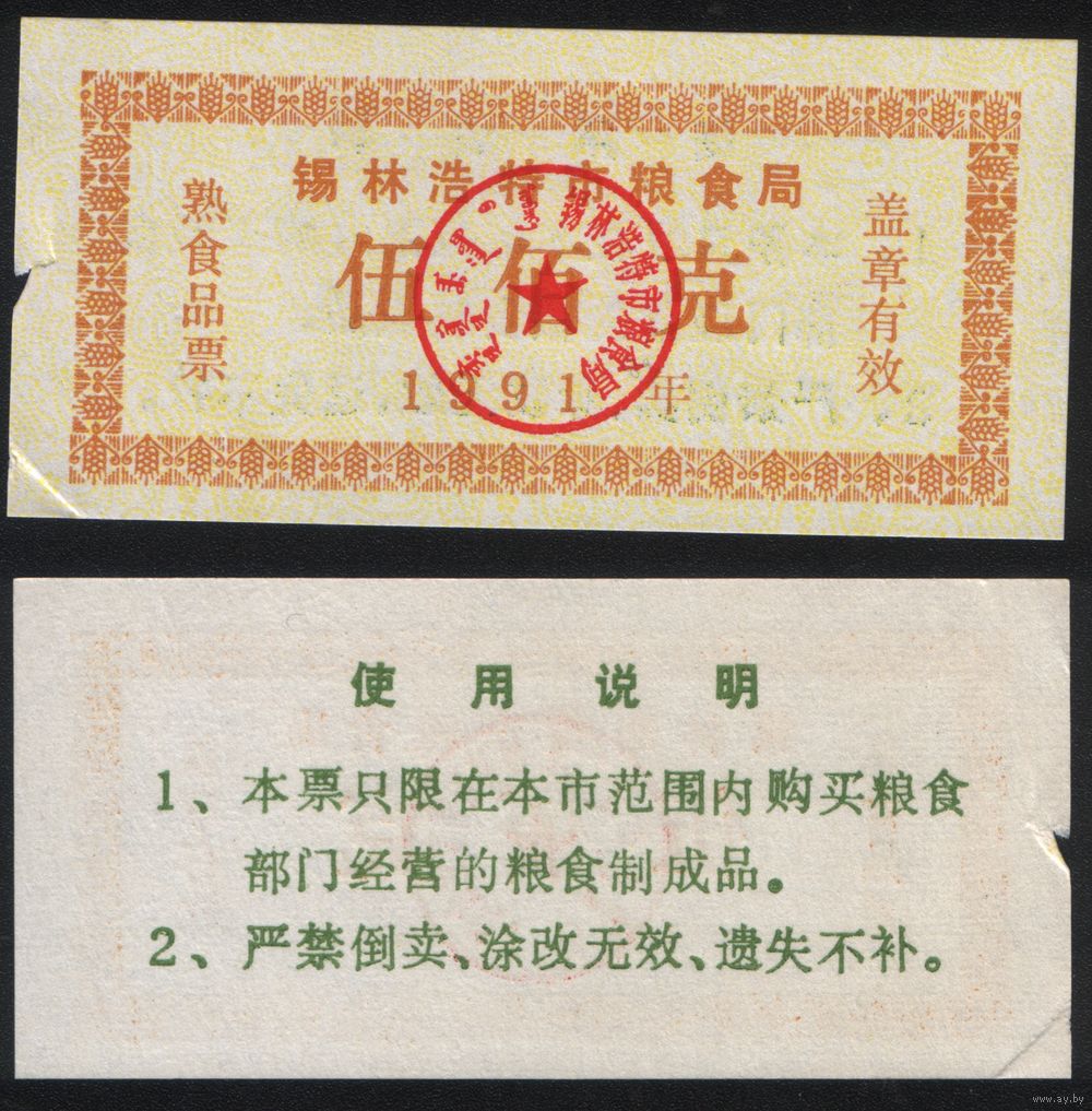 Китай 1991 год Силиньхот (Силинь) зерновое бюро Наньлинхот прод.талон на 500г (rd01