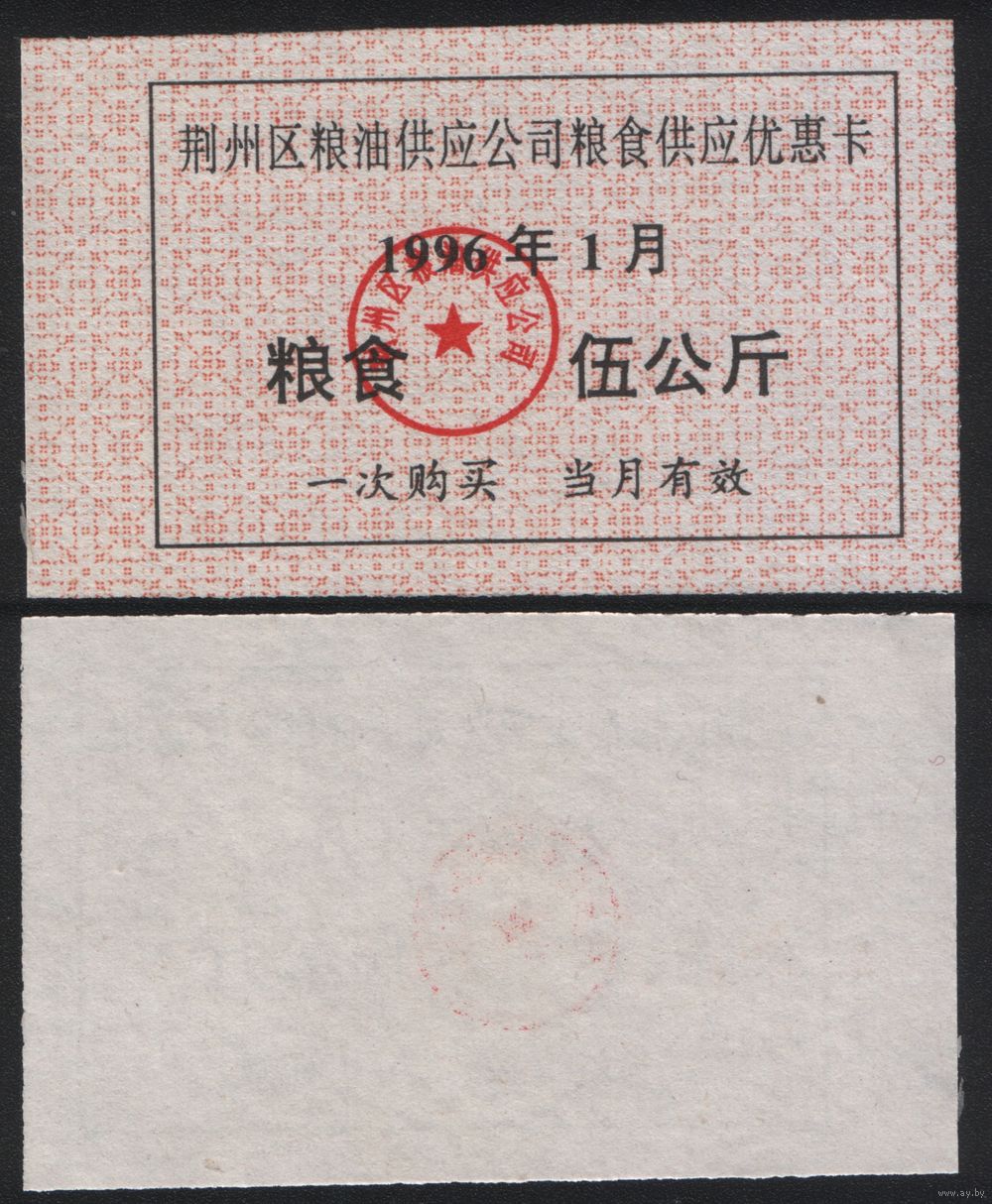 Китай 1996 год Цзинчжоу прод.талон (зерно и масло) на 5кг (01-январь) (rd07 =