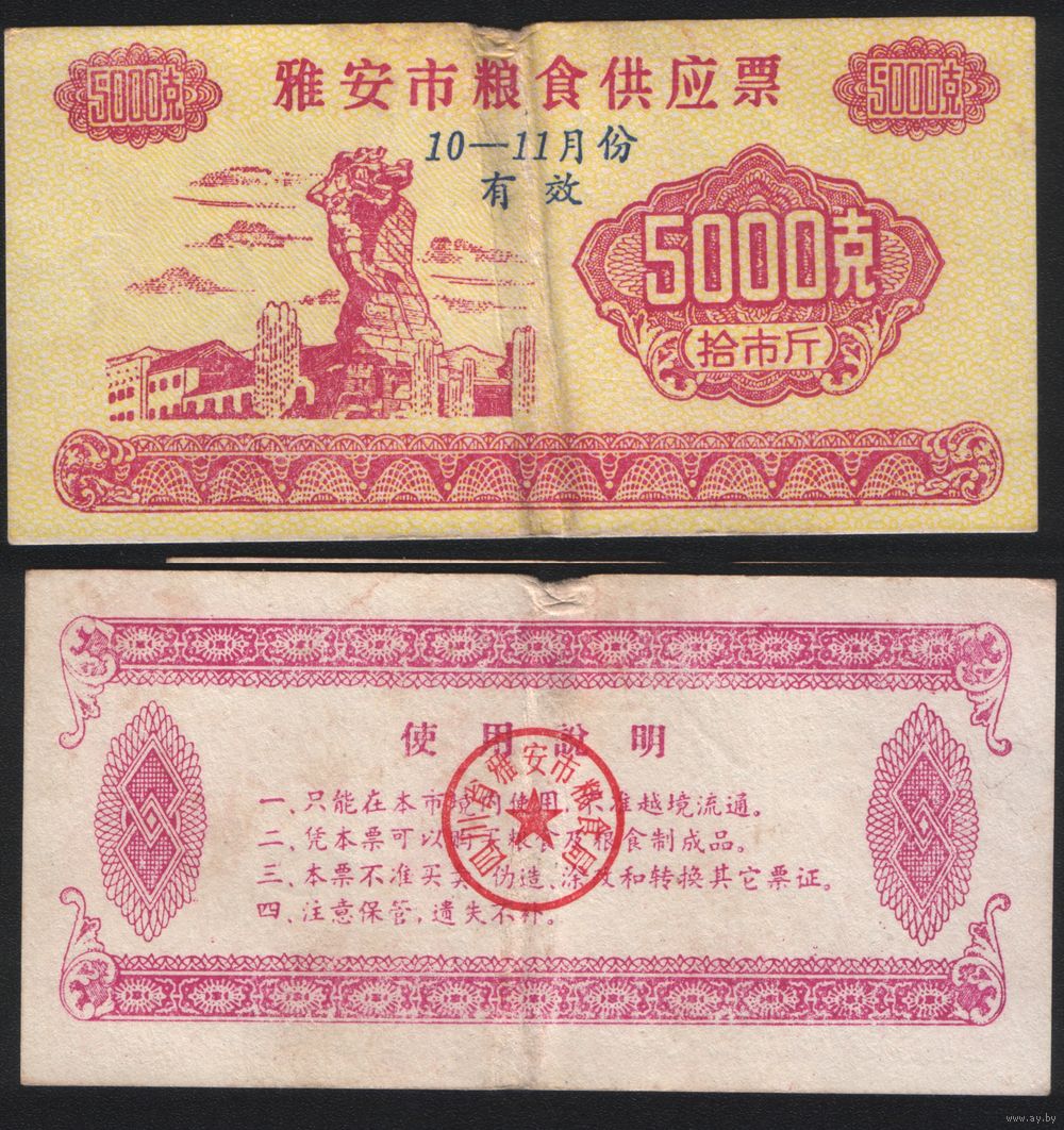 Китай 19__ год Яань прод.талон (зерно) на 5кг (октябрь-ноябрь) (rd08 =