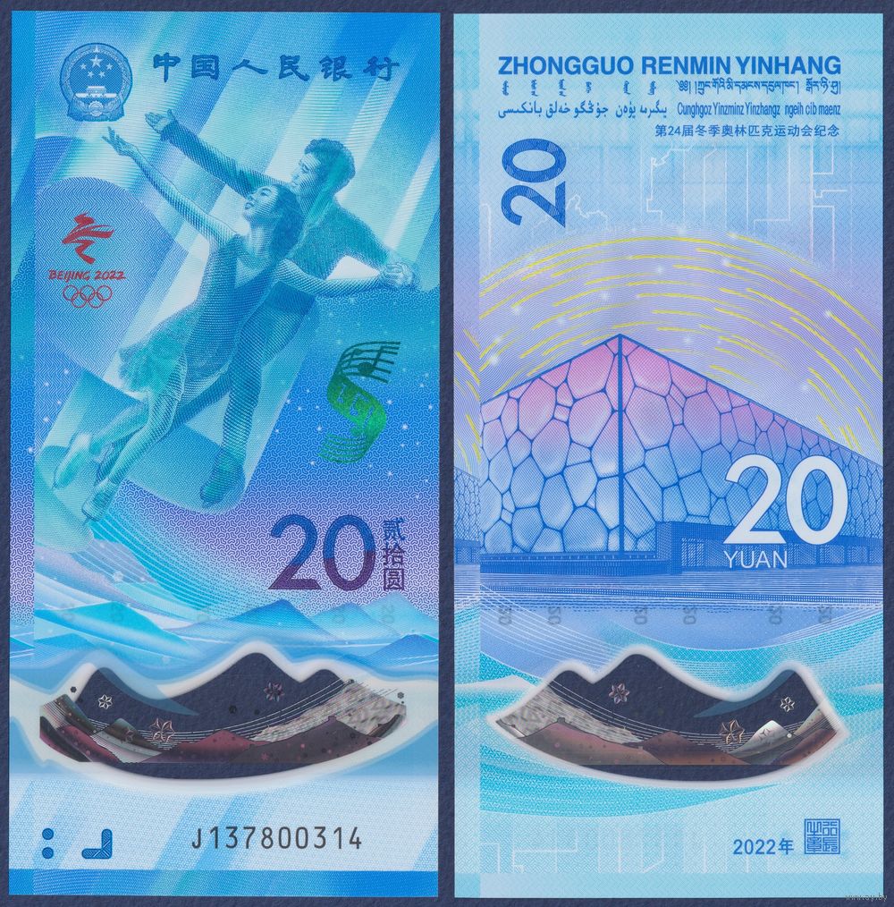 Китай, 20 юаней 2022 г., P-W919 (полимер, памятная - Зимние Олимпийские игры в Китае), UNC