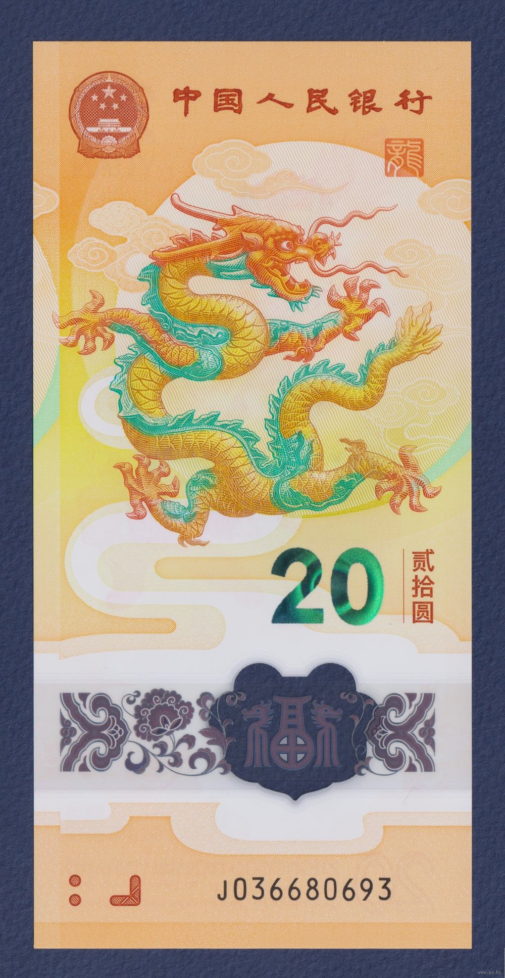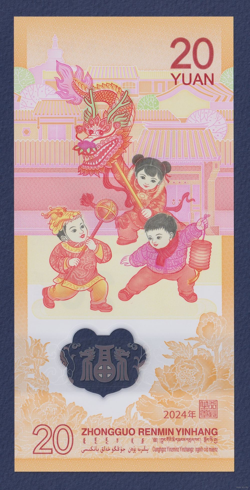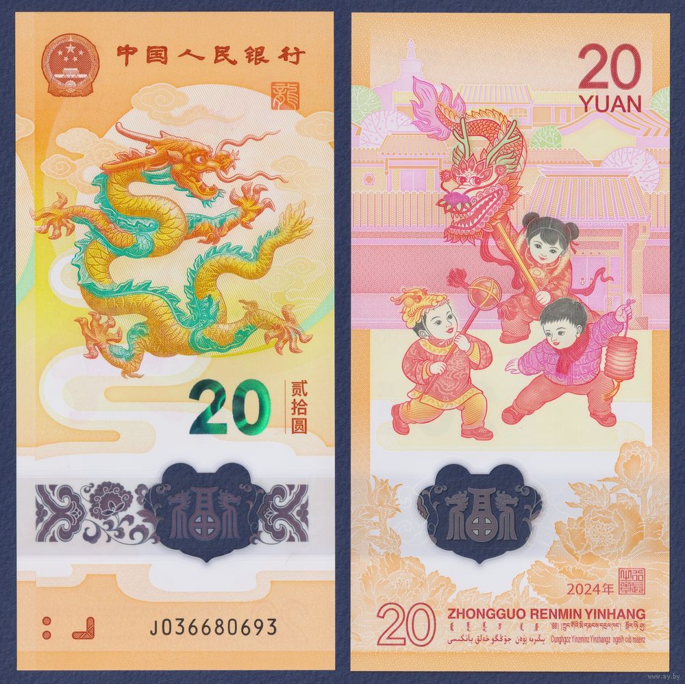 Китай, 20 юаней 2024 г, P-W920 (полимер, памятная - год дракона), UNC