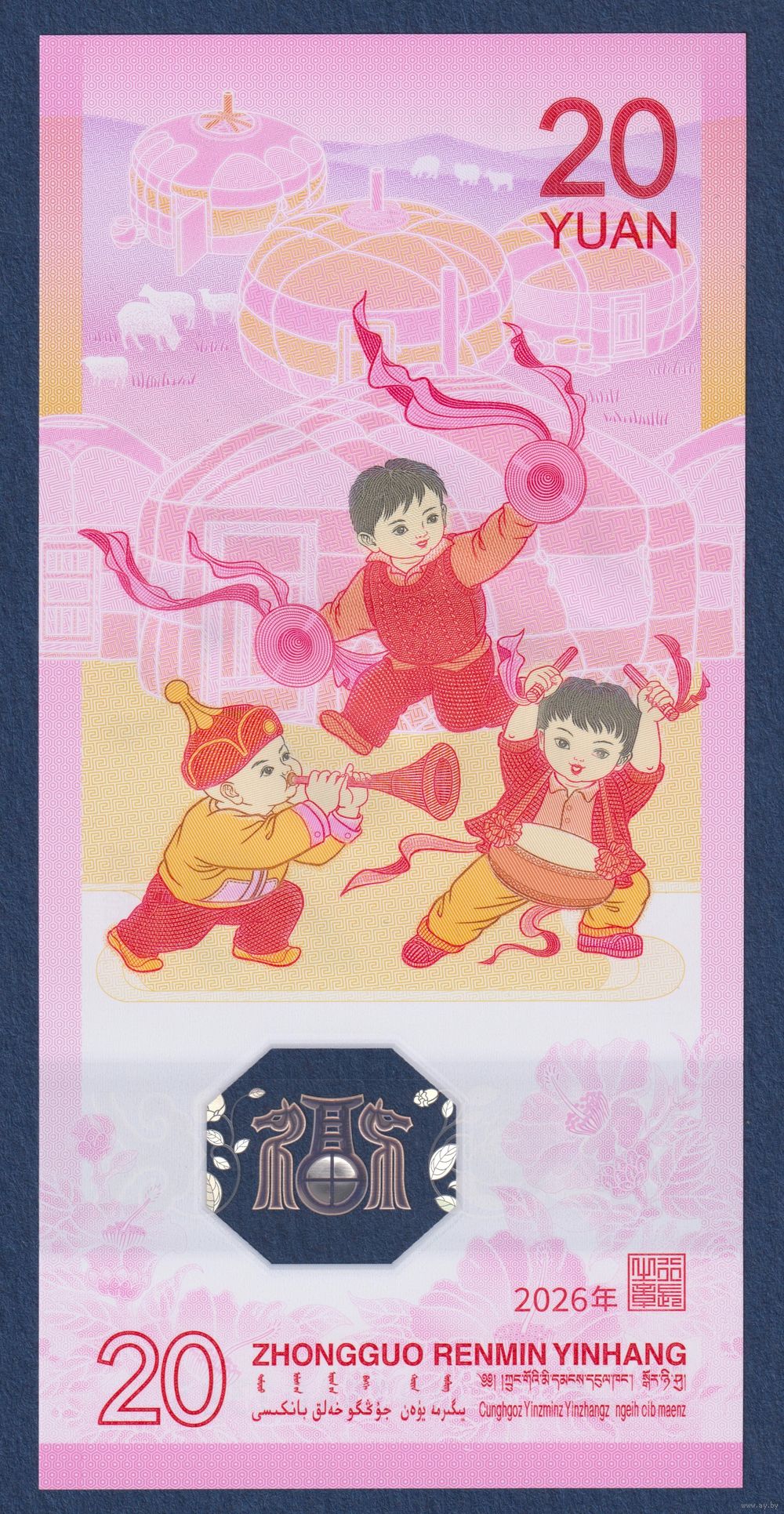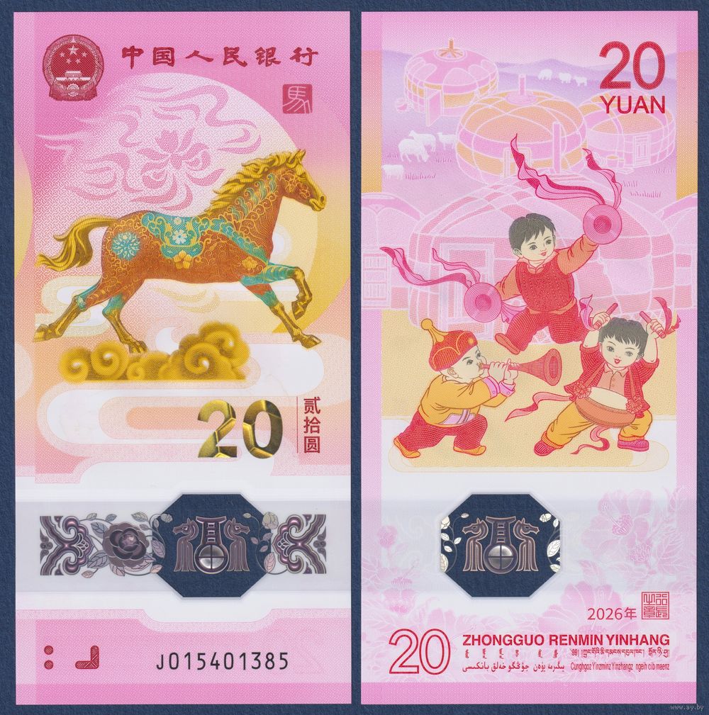 Китай, 20 юаней 2026 г, P-W922 (J, полимер, памятная - год лошади), UNC