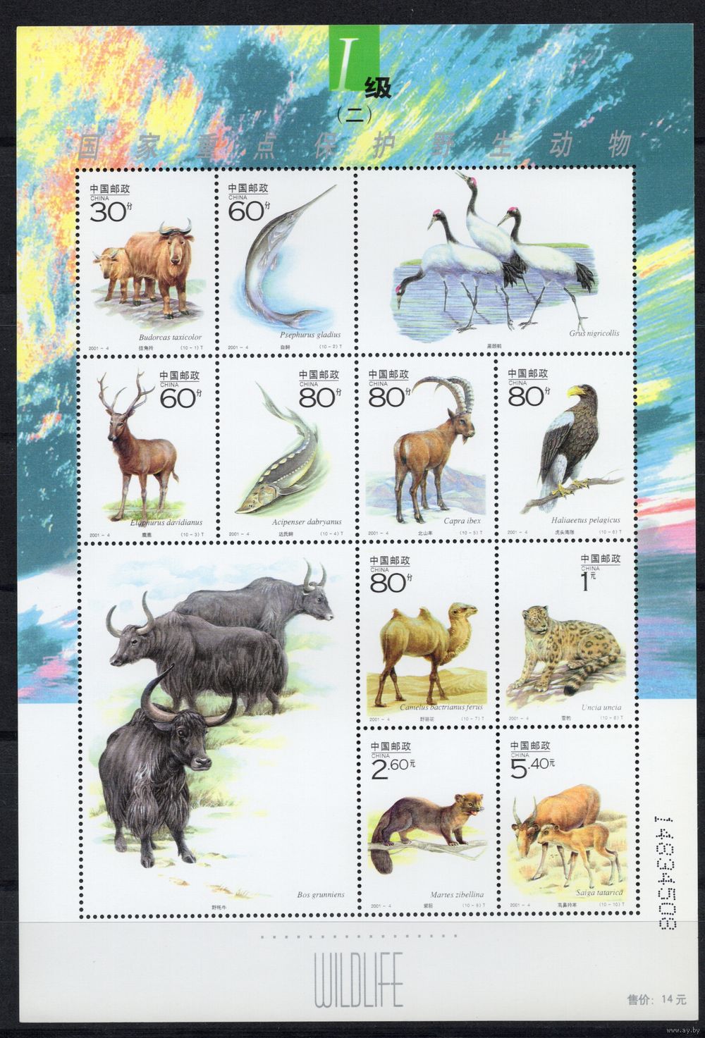Китай 2001. Фауна. Звери, птицы, рыбы. Малый лист 3219-28